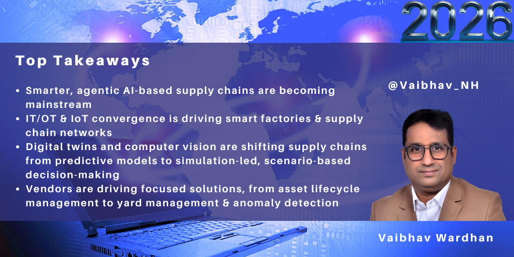 Clients who augment AI, IT/OT convergence, IoT-enabled intelligence, and autonomous execution, and work towards building an ecosystem of in-sourced as well as vendor-managed supply chains, will be able to realize the true potential of an autonomous and connected supply chain. The next era of supply chain transformation is not about doing things better, but about doing them differently, augmenting with next-gen technologies and building an AI-first, native supply chain for 2026 and beyond.